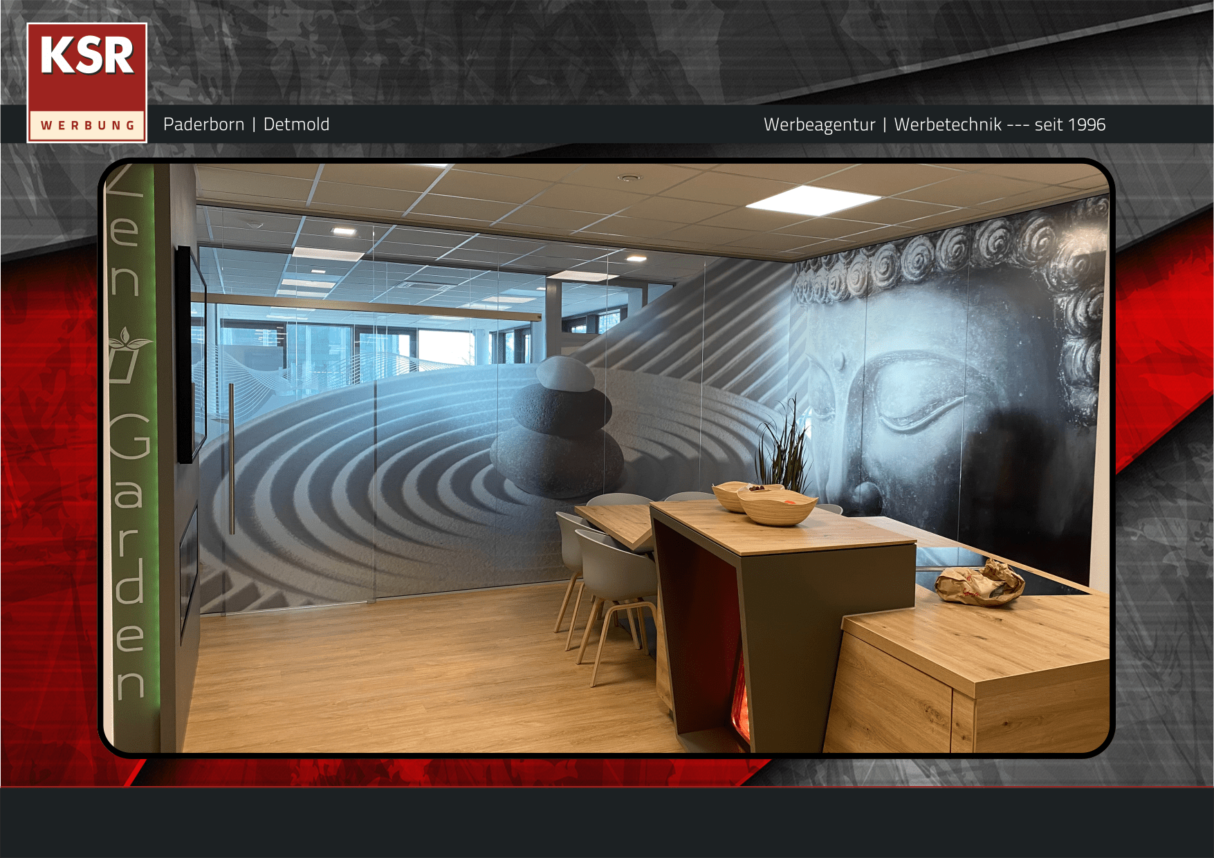 Ob Wand-, Bodengrafiken, Glasdekor, Keil- & Framelessrahmen, sowie Raum- und Funktionskennzeichnungen – wir gestalten Räume mit Wirkung, Struktur und zeitloser Qualität.